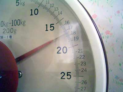 ・・・18kgを割っちゃったじゃん。 服を差し引いて17kgってとこか。 先月20kg丁度だったから、痩せちまったよなぁ。 |