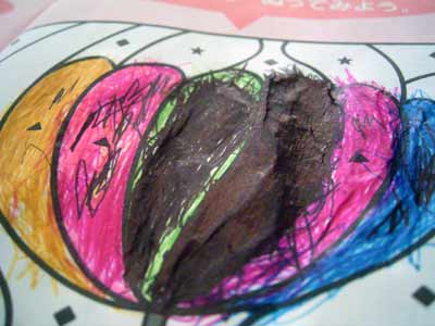 おう、七田も持ってきたし、昨日の塗り絵用にクーピーも持ってきたぞ。