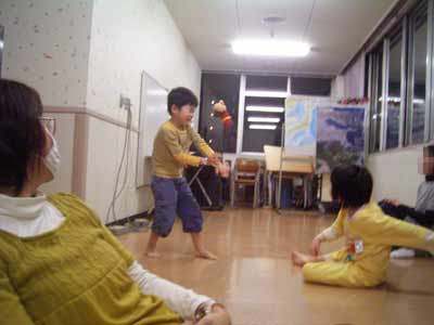 念力でアンパンマンを浮かすS(ウソ)。 ただ、今日は非常にガスが多く、 時折お腹が痛いという。 |