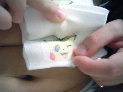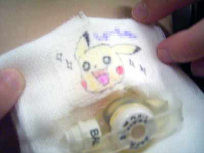 胃ロウのガーゼにはピカチュウが。 |