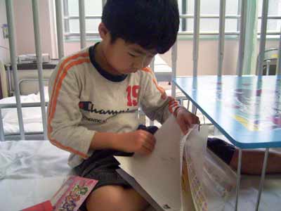 おママからの手紙を読むS。 |
