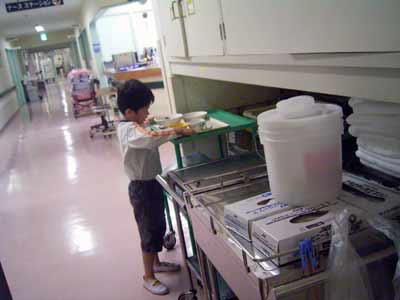 ワゴンの戸を開いてから入れるのだ。 |