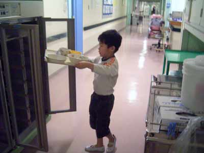 いったんお盆を置いて・・・。 |