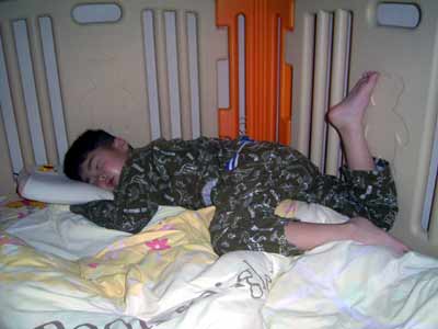 一ヶ月ぶりの外出&運動塾に疲れたのか、 シャチホコ寝。 さすがナゴヤしゅっちん・・・。 |