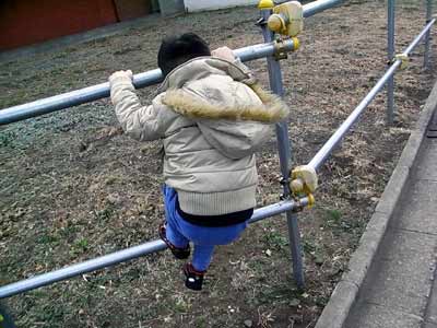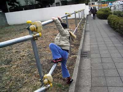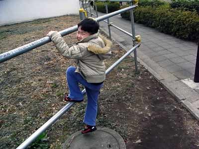 久々に、パイプに登る。 |