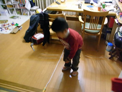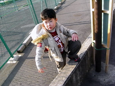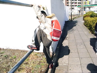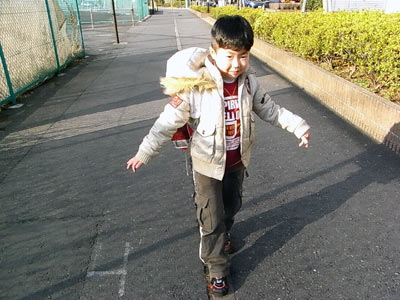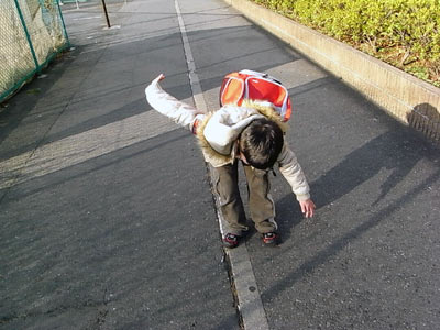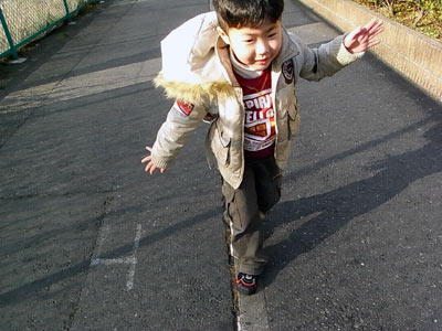 帰り道、平均台の自主練。 後ろ歩きは予習だな。 |