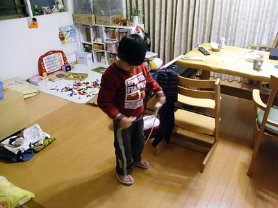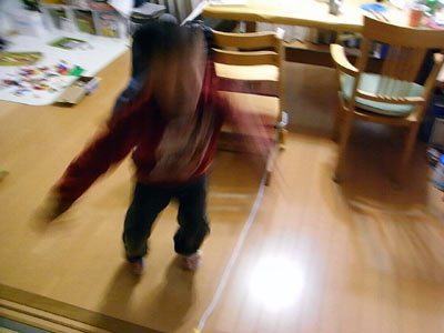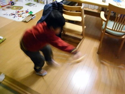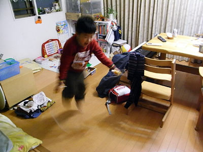 飛ぶが、必ずバランスを崩して手を付いてしまう。 スペシャルサンダルを履いているしな。 |