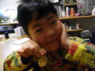 満点の生徒だけもらえる、金メダル。 |