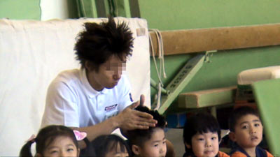 KSコーチも、手で台を押すように指示。 |