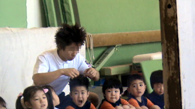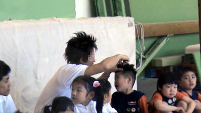 レッスン開始を待つ間。 UNコーチがSをイジリだす。 |