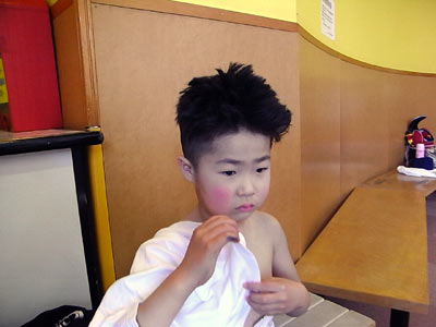 整髪料でビシッと決めた。 |