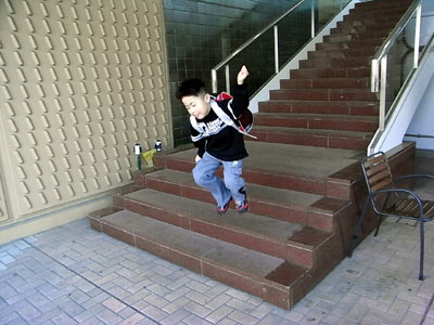ジャンプ自体は、だいぶ跳べるように。 3段目から、階段の面に跳べるようになった。 |