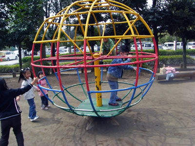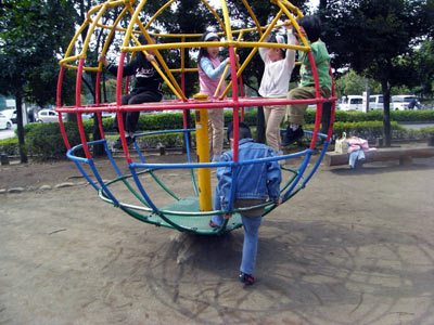久しぶりの回転遊具。 止まっているからだろうか、 S自ら「乗りたい!」と。 |