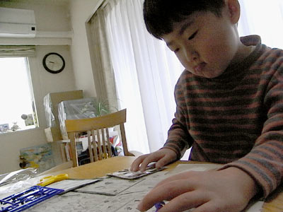 シンケンジャーのラムネ菓子のおまけのプラモを与えた。