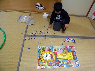 60ピースの時計のパズル、 120ピースのドラえもんのパズル、 どちらが大きいか比べてみる! |