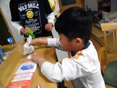 大事そうにティッシュで拭くS。 |
