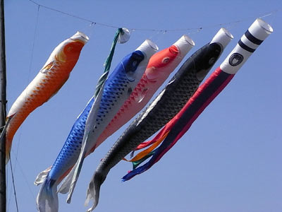 他人の家の鯉を見て、我が子の成長を喜ぶ春の陽。 なんつって。 |