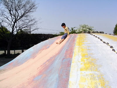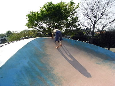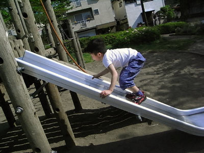 ナニも言わなくても、滑り台を逆上がり。 |