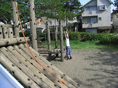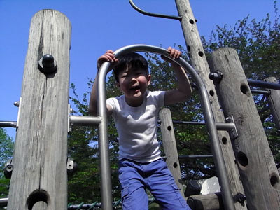 また公園をハシゴ。 自ら遊具に登って行く。 |