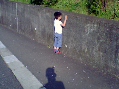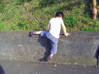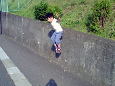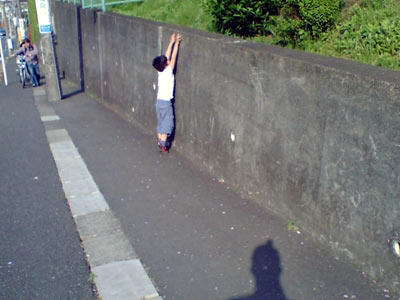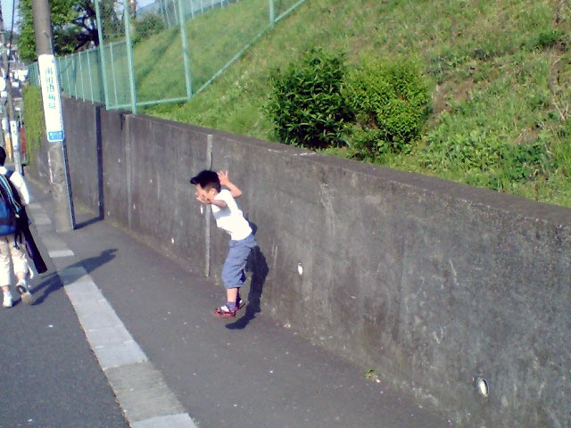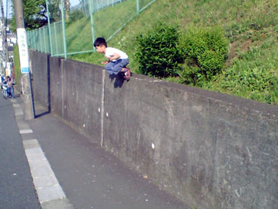 何を思ったか、急に塀を登りはじめた。