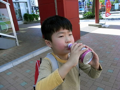 ラッパ飲み。 |