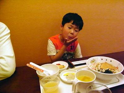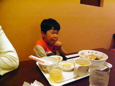 どうやら一口で食べたミニおにぎりが、 熱かったようだ。 |