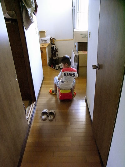 ジジババ宅へ。 引っ越しの準備だ。 毎週末Sには不遇の日々を強いている。 私も小さいとき、こうしてこの廊下で遊んだ。 今は亡き兄とも、こうして遊んだ。 もう間もなく、ここが無くなってしまう。 やはり、一抹寂しさは拭えない。 午後、ジジババ宅を後にする。 力余るSは、階段の坂を駆け上がる。 いずれここがSの主トレーニング場となる? ・・・わけないか。