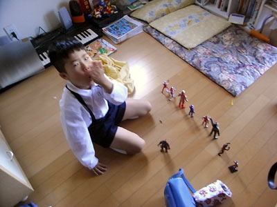 登園前の一時は、Sの自由な遊び時間。 |