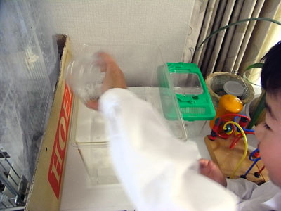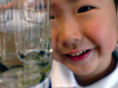 そして園の池からオタマジャクシを貰ってきた。 |