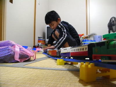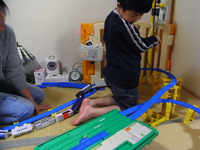 プラレールは超ロング車両を手で引く、地味〜な遊び方。 |