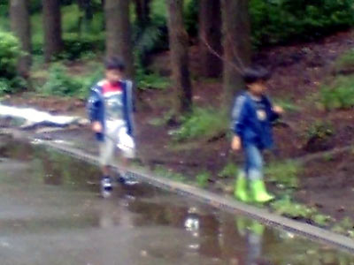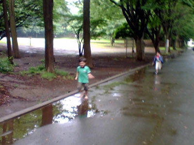 数日降った雨が、水溜まりになっていた。 |