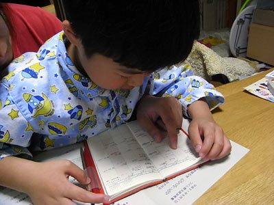 おママはカレンダーを見せて、 スケジュールを立て始めた。 |