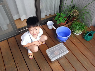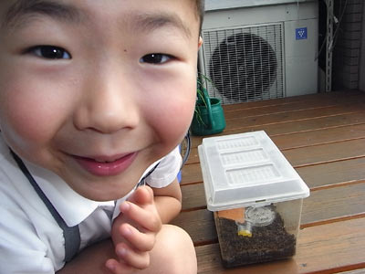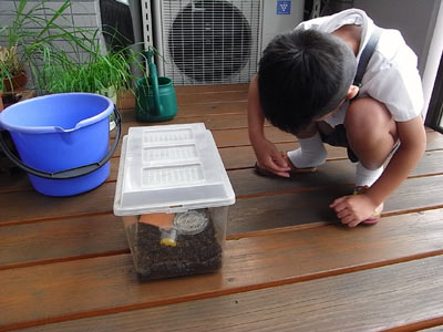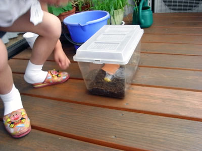 バナナの皮を入れると、何が湧く? う〜ん・・・けむち(毛虫)? |
