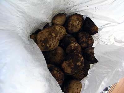 迎えに行ったおママは、イモがぎっしり詰まったリュックを持たされ、
