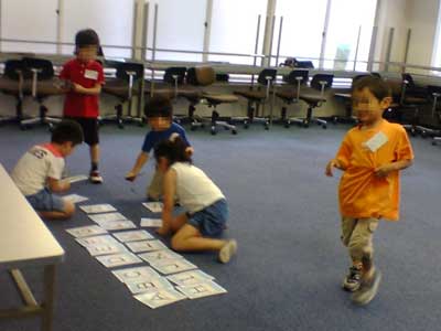 ネイティブの先生を招いて、大勢でゲームをしたりして盛り上がる。