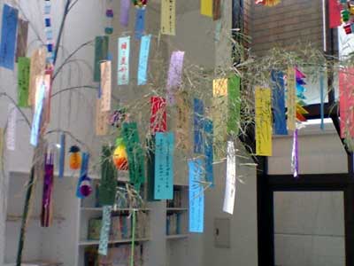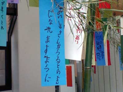 Sも短冊を書いた。 おいしゃさんかうるとらまん になれますように ・・・半分、書かされたな? |