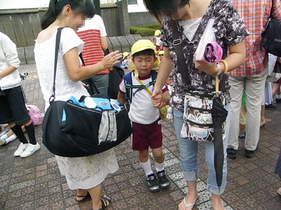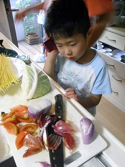 落ち着いたら、 ジジババに無事を報告。 ちなみにトマトと玉ねぎは、 Sがお泊まり会で持ち帰った獲物。 |