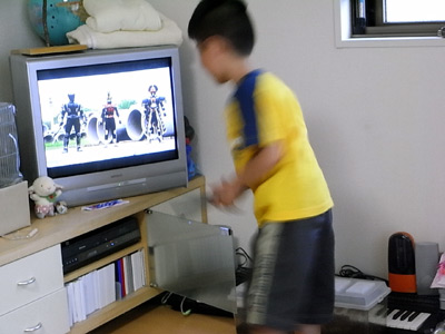 お絵かきモデルは、DVDを止めながら。 |