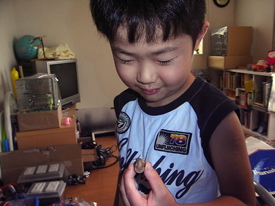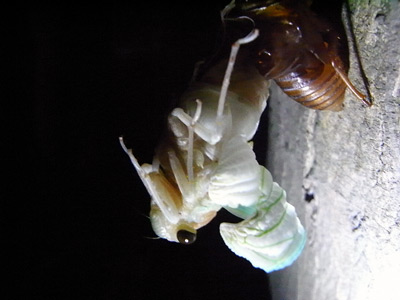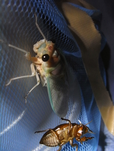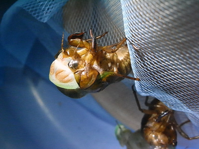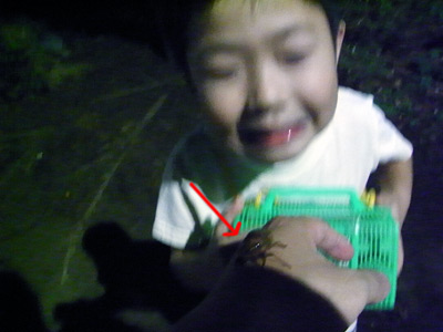 蝉の幼虫ゲット! 抜け殻じゃない身入りは始めてのS。 |