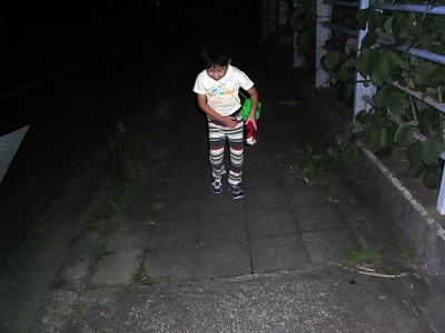 最初は、 オバケこわい〜!! と言っていたのに。 目を離すと、どんどん先に行ってしまう。 |