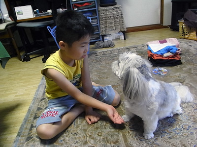Sの目を見て、言うことに従わない確信犯のノン。 まだまだ立場が逆転せず。 |