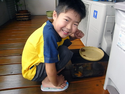 夏休みが終わったら、園の池に帰そうな。