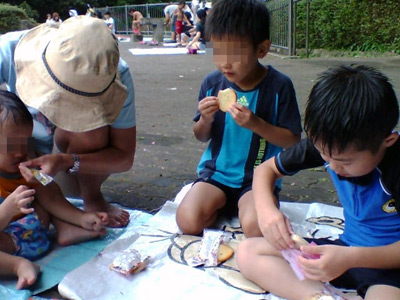 昨日受診前に僅かながら公園で遊んだが、 久しぶりの昼の外遊びである。 |