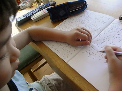 夏休みの課題の一つ、カタカナの修得。 それなりになってきたか? |
