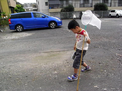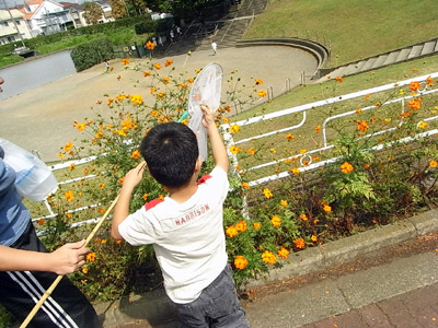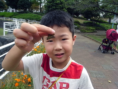 公園に虫採りに出かけた。 |