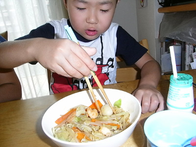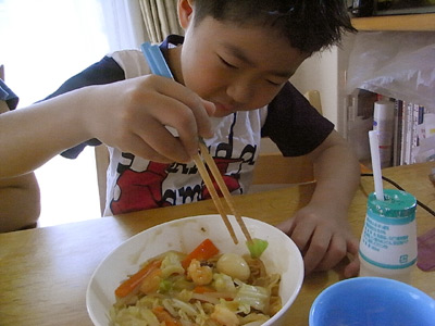 なかなか箸で掴めず。 |