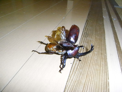 Sがカブトを飛ばそうとしていた。