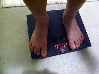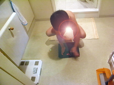 増えろ増えろと体重計を押すS。 それよりさっさと風呂に入れよ。 |