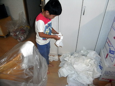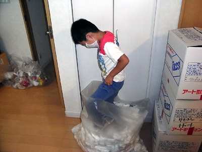 梱包材の再梱包。 |