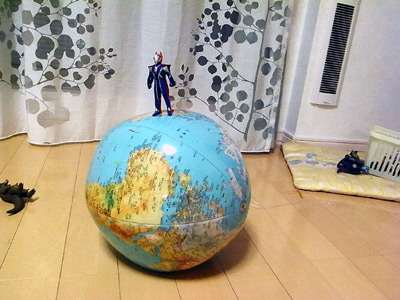 大気層を突き抜ける、巨大ウルトラマン。 一歩で死者数千万人。 |